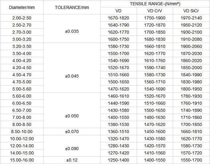 Andamp EN10270-2; ASTM-A229-GRADEⅠandamp; Andamp ASTM-A230; Andamp ASTM-A231; Andamp ASTM-A232; ASTM-A401. JIS G 3560